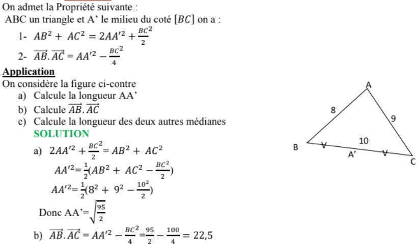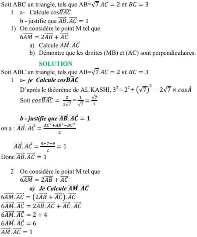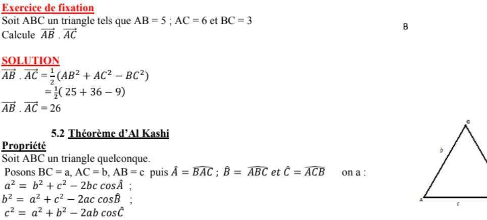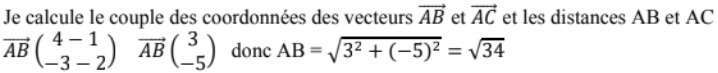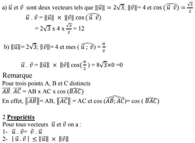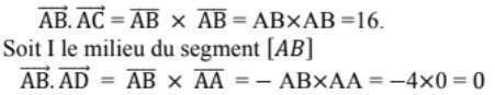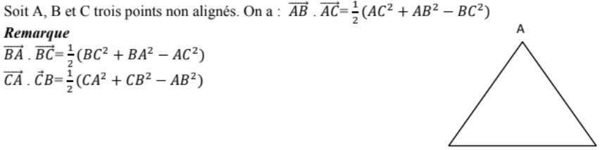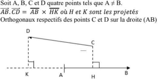 On a AB→.AC→= AB̅̅̅̅ × AH̅̅̅̅ où H est le projeté orthogonal de C sur la droite (AB)