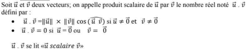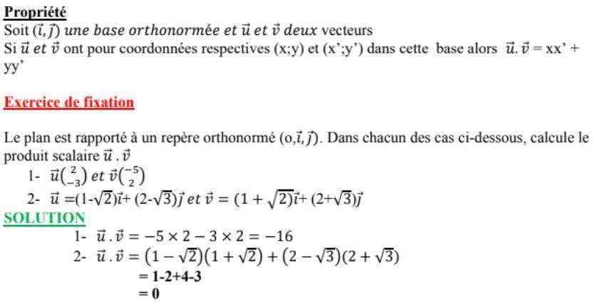 6. Produit scalaire de vecteurs connaissant leurs coordonnées