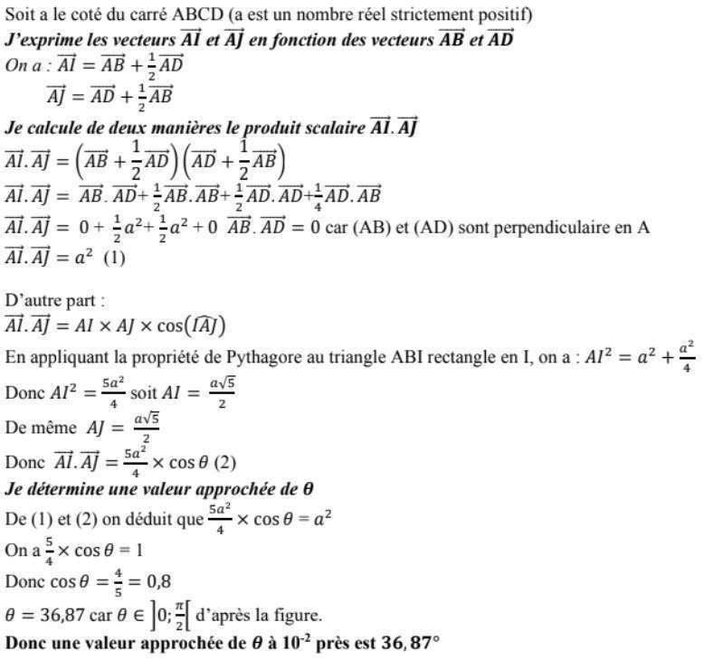 géomètre qui lui demande de calculer le produit scalaire AI→ . AJ→ . ne sachant pas comment procédé il te sollicite
