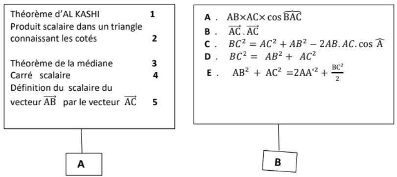 Ecris le numéro d’un élément de l’affirmation de l’ensemble A suivi de la lettre qui correspond à un seul élément de l’ensemble B.