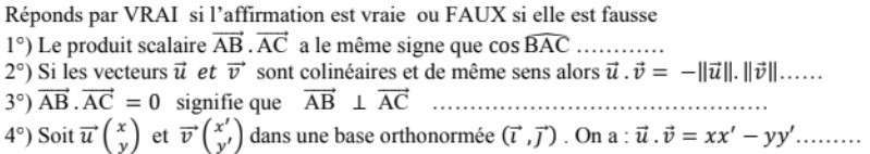 1°) VRAI 2°) FAUX 3°) VRAI 4°) FAUX