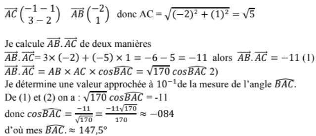Détermine une valeur approchée à 10−1 près de la mesure de l’angle BAC ̂.
