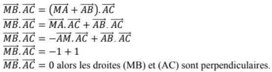 b) je Démontre que les droites (MB) et (AC) sont perpendiculaires