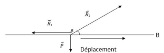 Il demande aux élèves de calculer le travail de chaque force (R2→ ,R1 et→; P→) pour un déplacement de A à B avec AB = 10 m.