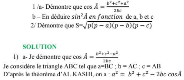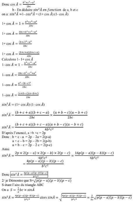 On appelle P son demi-périmètre et S son aire. On se propose de calculer S en