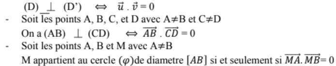– Soit (D) et (D’) deux droites de vecteurs directeurs respectifs u→ et v→ on a :