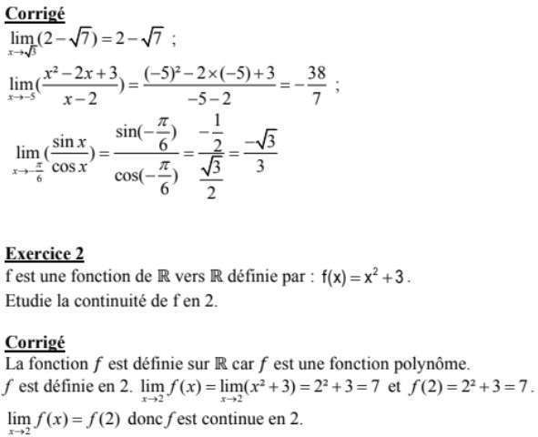 On dit que la fonction ƒ est continue en a lorsque f admet une limite en a.
