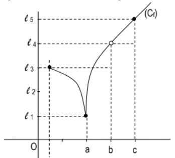 a) La limite de f en a est l1 ; la limite de f en b est l4 et la limite de f en c est l5.