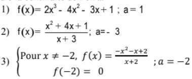 Dans chacun de ces trois cas, la fonction f est continue en a.