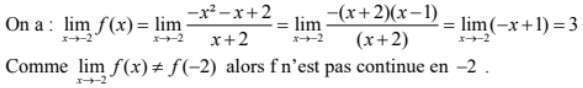 2) L’ensemble de définition de f est IR \{-3} donc f ne peut être continue en −3