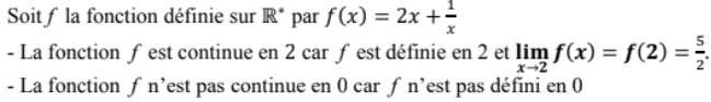 • Pour qu’une fonction ƒ soit continue en a, il est nécessaire qu’elle soit définie en a.