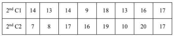 Au premier trimestre de l’année 2020, le premier élève en mathématiques de la classe 2nd C1 et celui de la classe de 2nd C2 d’un lycée ont eu les notes suivantes (en mathématiques).
