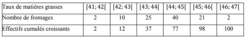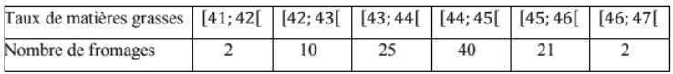 – La moyenne des taux de matières grasses comprise entre 44 et 46