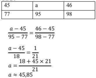 Après calcul, on remarque que la moyenne calculée ( 44,24 ) est comprise entre 44 et 46 ;