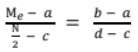 d est l’effectif cumulé croissant de [a; b[ et c est celui de l’intervalle qui précède [a; b[