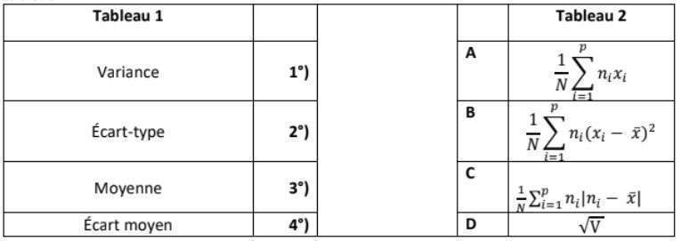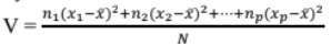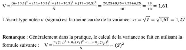 où (xi, ni) est la série statistique de moyenne x̅; p le nombre de modalités et