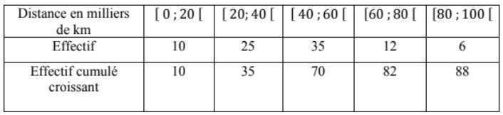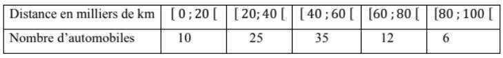 Une étude statistique portant sur les distances parcourues par des automobiles fait