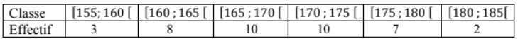 1- a°) les classes obtenues sont : [155; 160 [ , [160 ; 165 [ , [165 ; 170 [ ,
