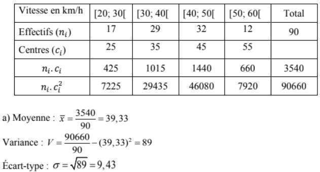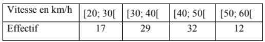 Le tableau ci-dessous donne une étude statistique portant sur la vitesse des véhicules dans une ville.