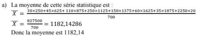 a) Calcul la moyenne et l’écart-type de cette série statistique.