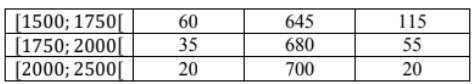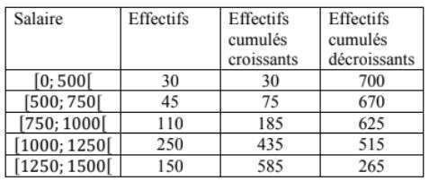 On utilise une partie du tableau des effectifs cumulés croissants; on a :