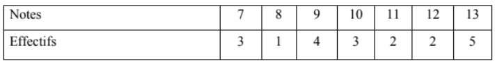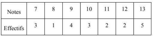 Un groupe d’élèves a obtenu les notes suivantes : 1 ; 2 ; 5 ; 7 ; 8 ; 10 ; 17 ; 20 ; 25