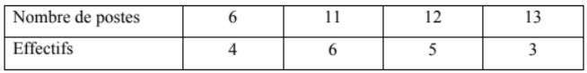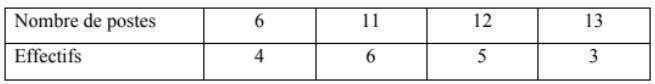 Un relevé du nombre de postes dans les cybercafés d’une commune nous permet de dresser le tableau ci-dessous :