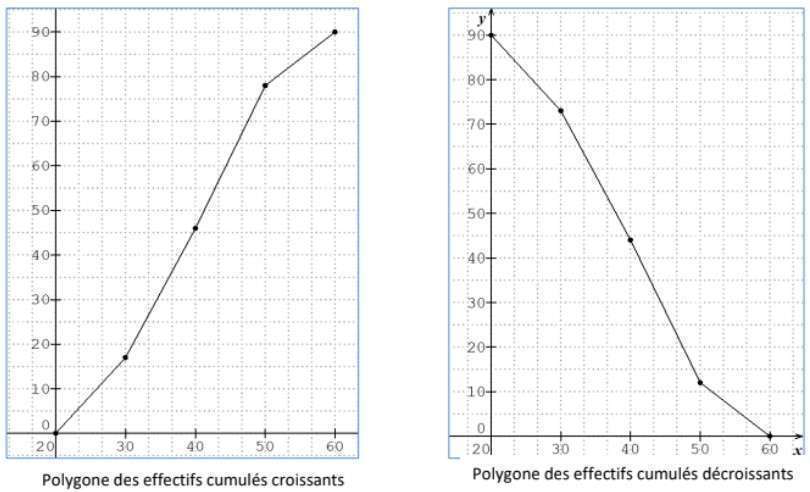 L’abscisse du point d’intersection de ces deux polygones est la médiane de cette série statistique.