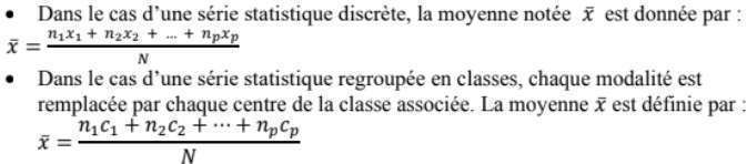Où (xi, ni) est la série statistique de moyenne x̅ et P le nombre de modalité.
