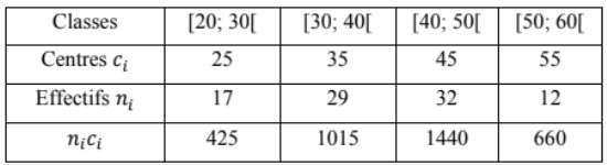 Le tableau ci-dessous donne l’âge des professeurs d’un lycée